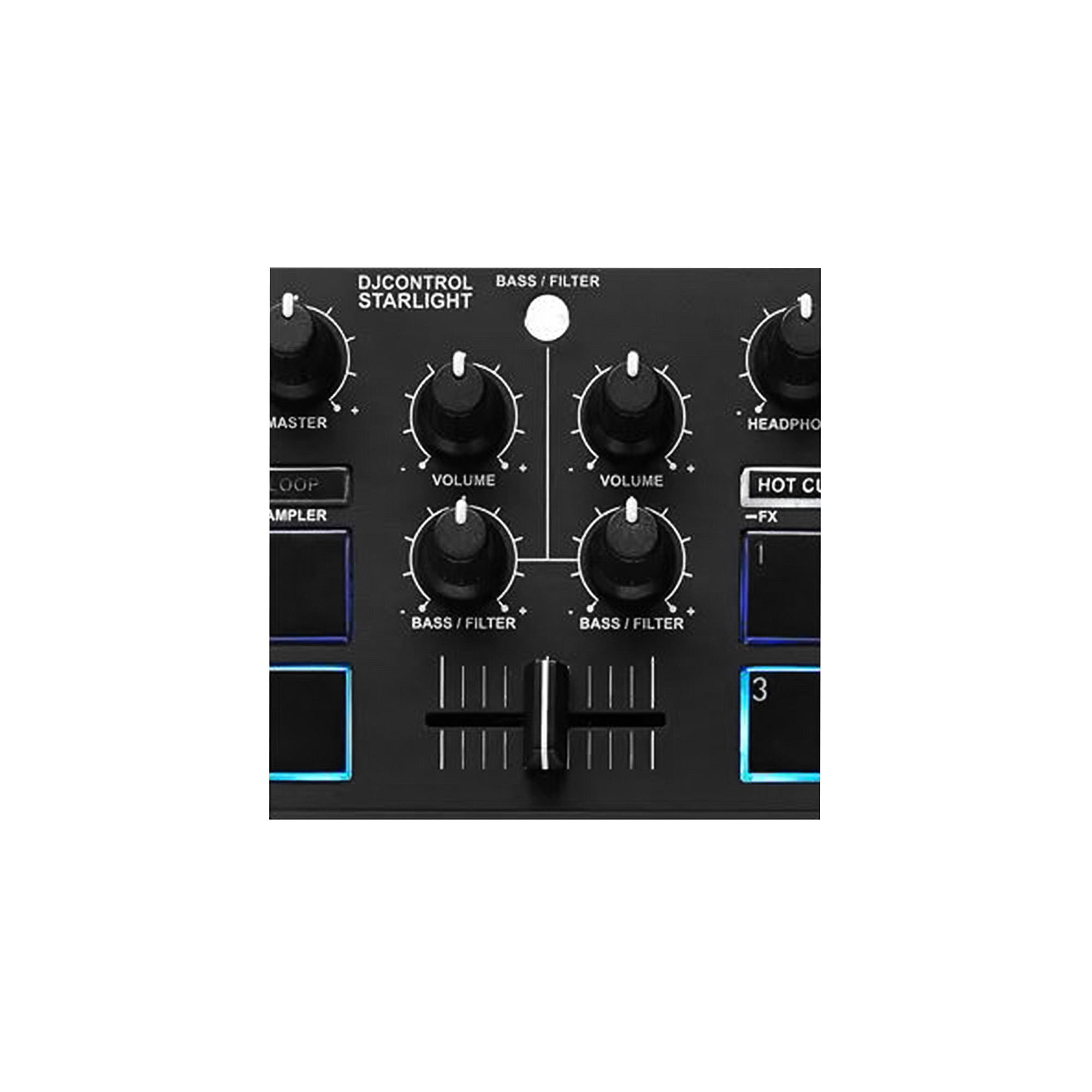– Botões de EQ dos graves/filtro + botões de volume dos decks