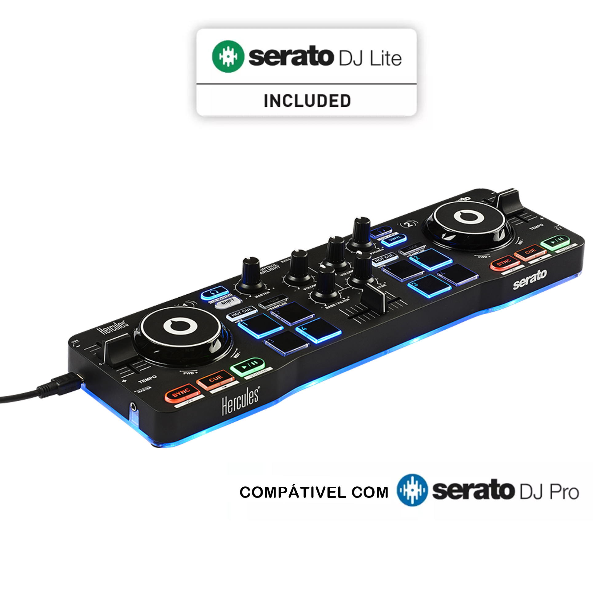 O Software Serato DJ Lite, incluído, permite igualmente controlar a iluminação de base do controlador (RGB e efeito estroboscópico).