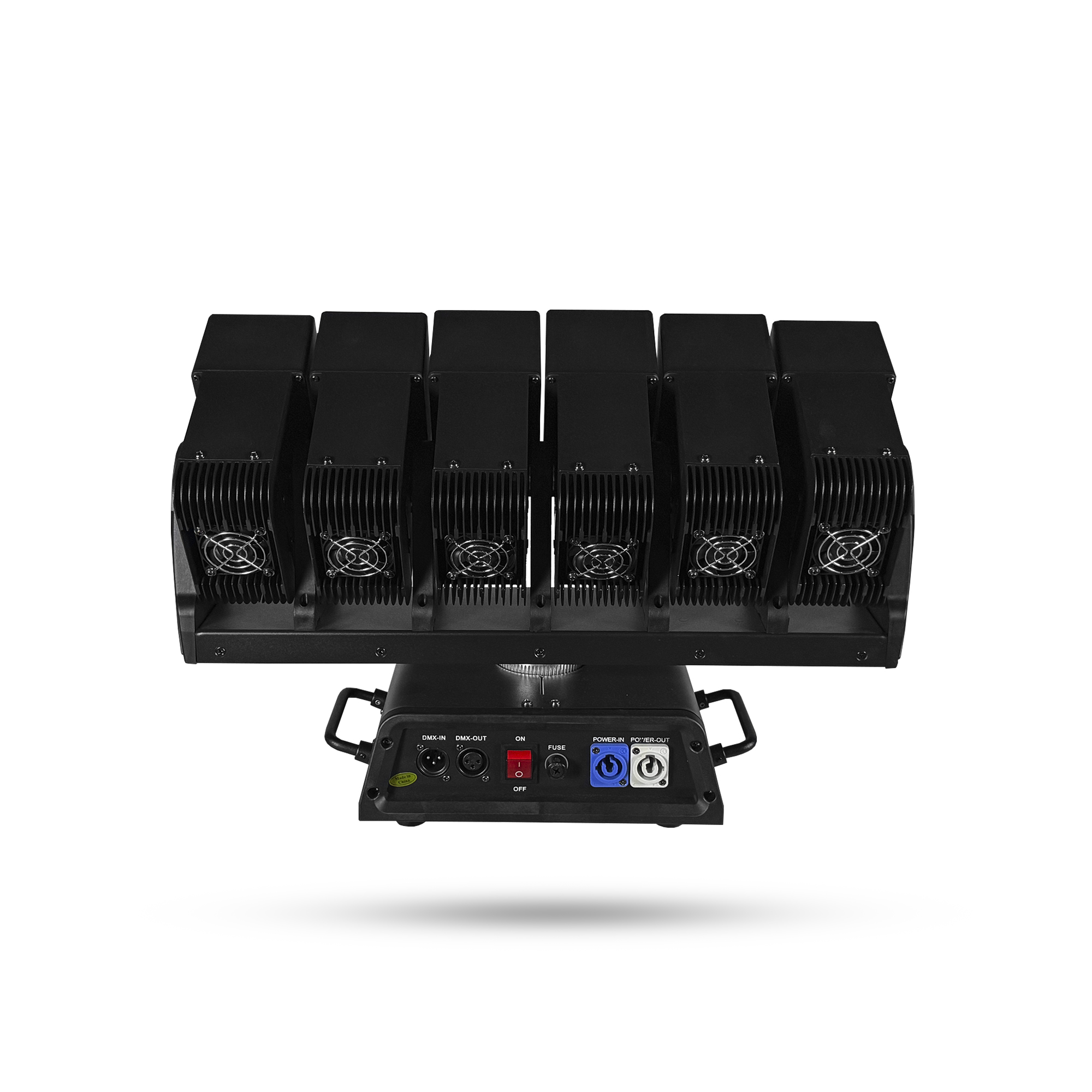 Composto por 6 cabeças móveis independentes, cada uma equipada com LED RGBW de 60W de potência real, o Swingin 360 entrega intensidade luminosa impressionante, cores vibrantes e mistura homogênea, permitindo desde efeitos de wash dinâmicos até movimentos criativos no espaço.